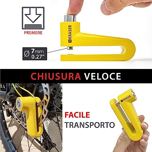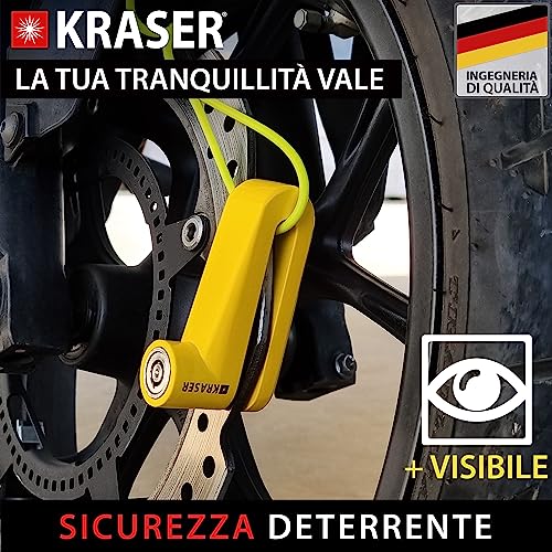 KRASER KR707Y Bloccadisco Moto, Bloccaggio ø7 Universale, Serratura a Sfera Antitrapano, Accessori Cavo Reminder, Antifurto Moto, Lucchetto Moto Scooter Bici Elettrica, Blocca Disco Moto