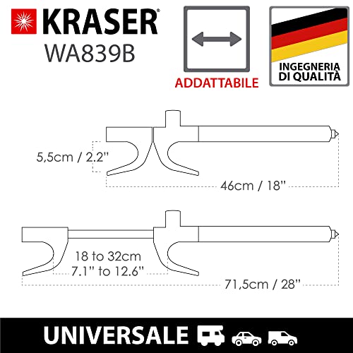 KRASER WA839B Antifurto Auto Bloccasterzo Alta Sicurezza Livello 9/10, 3 Chiavi Curve Antiscasso, Resistente Acciaio Inossidabile, Martello Emergenza, Blocca Volante, Blocca Sterzo Automobile