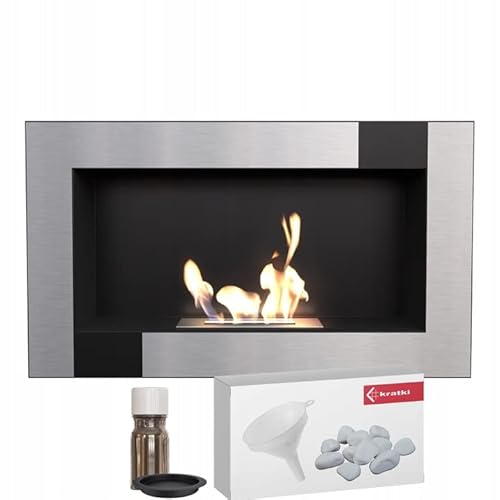 KRATKI Golf Qube Camino a bioetanolo per interni Biocontenitore a parete 0,2 l Certificato TÜV Acciaio nero e lucido 37 x 64 cm Plus Set per aromaterapia alla melissa