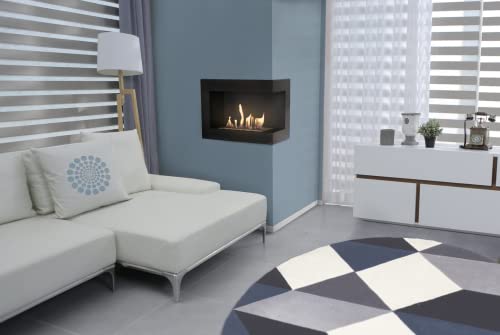 KRATKI Delta 600 Caminetto ad angolo destro a bioetanolo + ciottoli + imbuto + set per aromaterapia | Per montaggio a parete o ad incasso l Biocontenitore 0,5 l, TÜV | Acciaio, 48 x 60 cm, nero