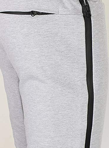 Kratos Attire New Men Plain Full Zip Hooded Slim Fit Hood Joggers Stretchable Tracksuit Set (Grey, X-Large)