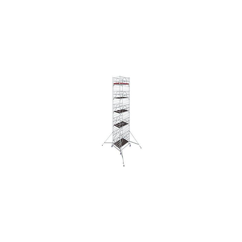 Trabattello mobile STABILO Serie 50, lunghezza piattaforma 2,50 m, altezza di lavoro 11,40 m. Fornitura = smontato. Larghezza piattaforma = 1500 mm. Altezza piattaforma = 1000 mm. Lunghezza piattaforma = 2500 mm. Altezza di lavoro = 11.4 m. Altezza di salita = 9.4 m. Altezza trabattello = 10.5 m. Peso = 455 kg. Materiale = alluminio. Portata = 200 kg/m². Diametro ruote = 150 mm. Larghezza trabattello = 1.9 m. Lunghezza trabattello = 2.05 m. Norma = DIN EN 1004-1. Tipo di prodotto = trabattelli mobili standard. Montaggio comodo e sicuro grazie alla distanza massima della piattaforma di 2 m. Omologazione TÜV, portata 200 kg/m² (trabattelli di classe 3) secondo DIN EN 1004-21. Il trabattello mobile professionale in alluminio con doppia superficie di lavoro. Omologazione TÜV, portata 200 kg/m² (trabattelli di classe 3) secondo DIN EN 1004-1. La sicurezza è garantita dal fissaggio del parapetto con sistema GuardMatic prima che venga montato il piano superiore. Quando si sale alla