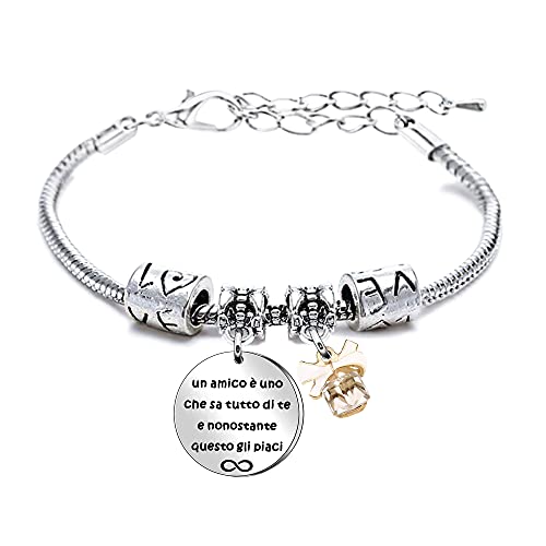 Kraven Regali di Amicizia Amica Bracciale da Donna Uomo Gioielli di Compleanno Personalizzato con Incisione un amico è uno che sa tutto di te e nonostante questo gli piaci