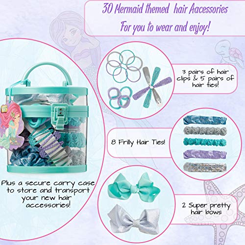 KreativeKraft Accessori Capelli Bambina | Set Accessori per Capelli con Fiocchi Decorativi, Elastici, Mollette, Fermagli, Nastri, 30 Pezzi Tema Sirena | Regali per Bambine e Ragazze 4-12 Anni