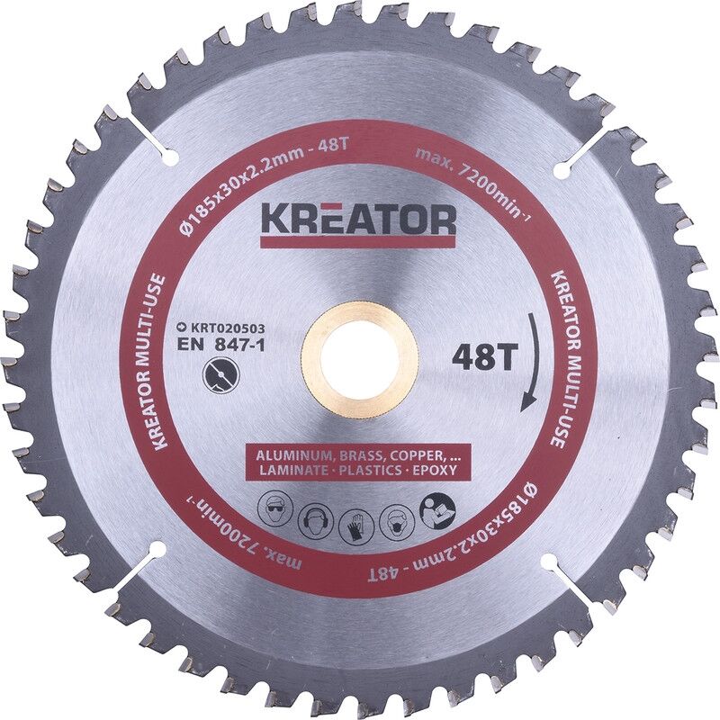 KREATOR KRT020503 - Disco de sierra multiuso 185mm48d Diametro: 185 mm Al salvia 30 mm Numero di denti 48 Associato al senso di rotazione Massimo. Velocità di rotazione: 7200 giri/min