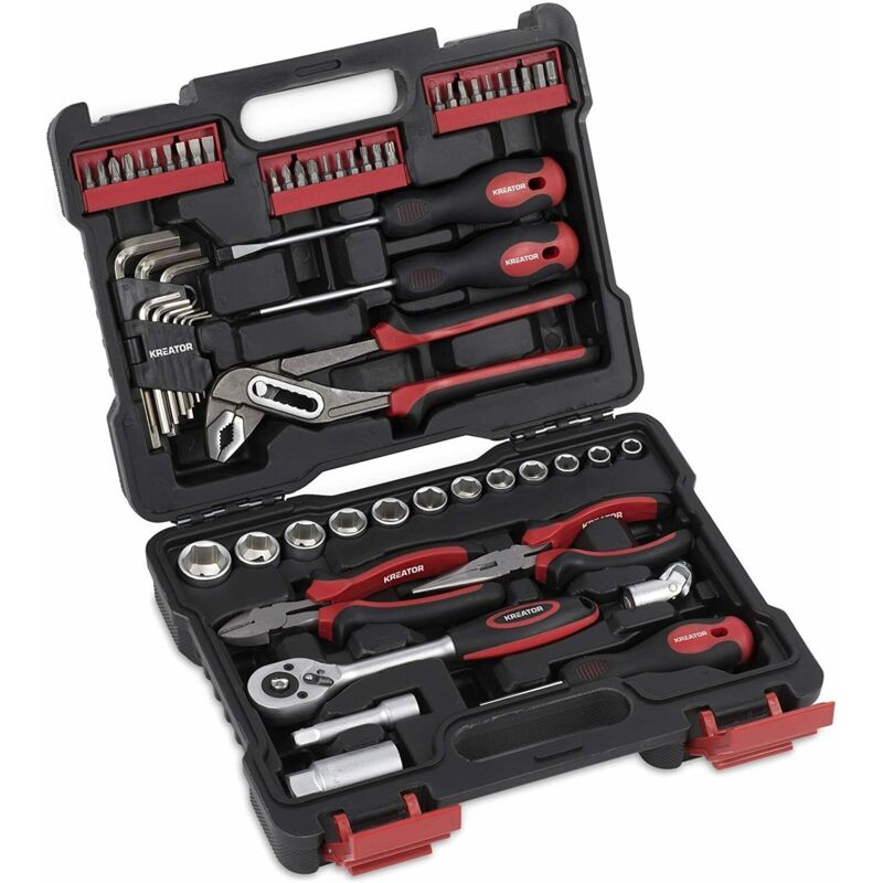 Informazioni sul prodotto: Custodia in plastica robusta Dimensioni: 31x25x9 cm (LxLxA) Marchio: Kreator Contenuto della confezione: 12 bussole (3/8-8/9/10/11/12/13/14/15/16/17/19/22 mm) 2 cacciaviti (SL6/PH2) 9 chiavi a brugola da (1,5/2/2,5/3/4/5/6/8/10 mm) 6 punte di cacciavite (testa a taglio): SL2/3/4/5/6/7 4 punte di cacciavite (Philips): PH0/1/2/3 4 punte di cacciavite (Pozi): PZ0/1/2/3 6 punte di cacciavite (Torx): T10/15/20/25/30/40 6 punte di cacciavite (esagonali): H2/3/4/5/6/7 4 punte di cacciavite (quadrate): S01/2/3 mm 1 cricchetto (3/8 - 24T) 1 pinza telefonica (150 mm) 1 fresa trasversale (150 mm) 1 pinza multipla (250 mm) 1 cacciavite a cricchetto 1 snodo cardanico da 3/8 2 chiavi per candele (3/8 - 21 mm) 1 prolunga (70 mm)