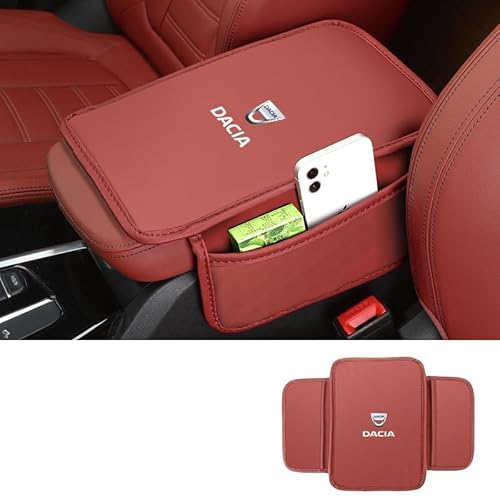 KRHINO Auto Braccioli per Dacia, Copri Bracciolo Console Centrale in Pelle PU Tappetino Antiscivolo Bracciolo Coprisedile Protettore Parti di Automobili,-Red