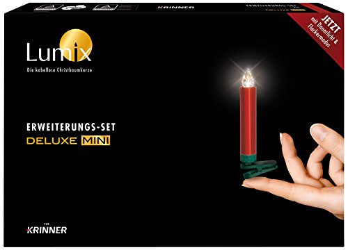 Krinner Lumix Deluxe Mini 75356 - Set di 7 candele LED IR, a pile, senza cavi, per albero di Natale, luce bianca calda, colore: rosso