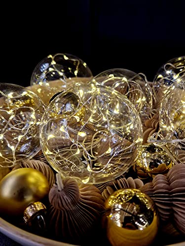 KRINNER LUMIX Light Ball L - Palla per albero di Natale, senza fili, in vetro soffiato a bocca, con fondo piatto, anche per decorazioni da tavolo, trasparente