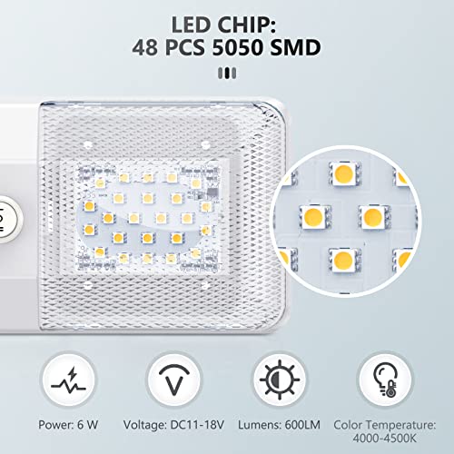 Kriogor Lampade LED, 48LED 600LM 12V Plafoniera RV per Auto Lampada da Soffitto con Interruttore, Universale per Auto Camper Caravan Caravan Camper