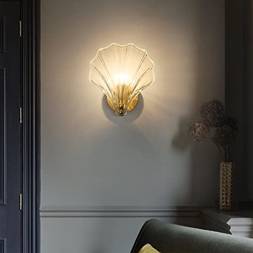 KRIPINC Applique LED da Parete Interno, Lampada da Parete a Forma di Conchiglia, Applique Vetro E14, Lampada Vintage, Applique Moderne da Parete per Soggiorno Camere da Letto Comodino (Trasparente)