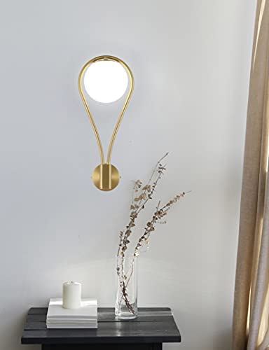KRIPINC Applique da Parete Interno Vintage, Lampada da Parete LED a Sfera in Vetro 5W, Lampada da Muro Camera da Letto, Applique Moderne da Parete per Soggiorno, Camera da Letto, Bagno (2*Oro)