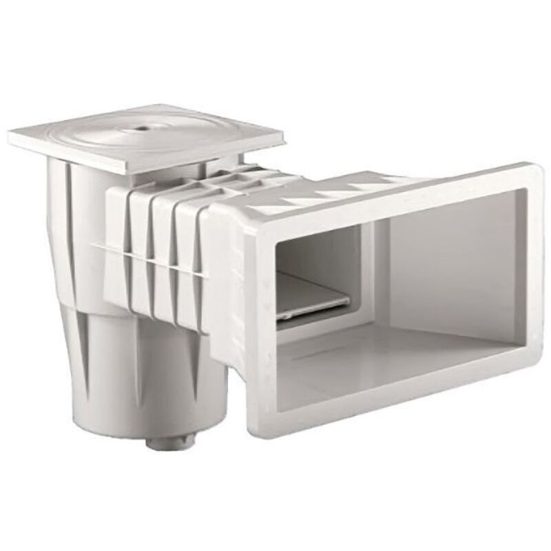 Caratteristiche skimmer a bocca larga per piscina interrata 428x253 mm Tubo ø50 mm: 10 m3/h Tubo ø63 mm: 15 m3/h Corpo in ABS bianco con rilievi per favorire l'ancoraggio nella struttura di cemento Cornice e copri cornice superiore in ABS Cornice e coperchio calpestabili Battente galleggiante Cestello per trattenere corpi solidi di dimensioni più corpose e per ospitare le pastiglie di prodotto chimico Attacco filettato femmina ø1½" o da 63 mm Manicotto ø50 mm con rottura prestabilita per troppopieno Guarnizione sandwich per isolamento liner Guarnizioni con bi-adesivo Viteria in acciaio inox Massima portata in aspirazione con velocità dell'acqua pari a 1,7 m/s