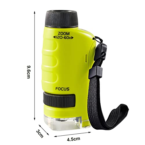 Kripyery 60-120X Studente Microscopio Regolabile Messa A Fuoco Mini Pocket Microscopio Giocattolo per Bambini Studenti Imparare Verde