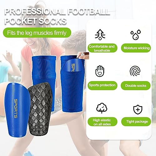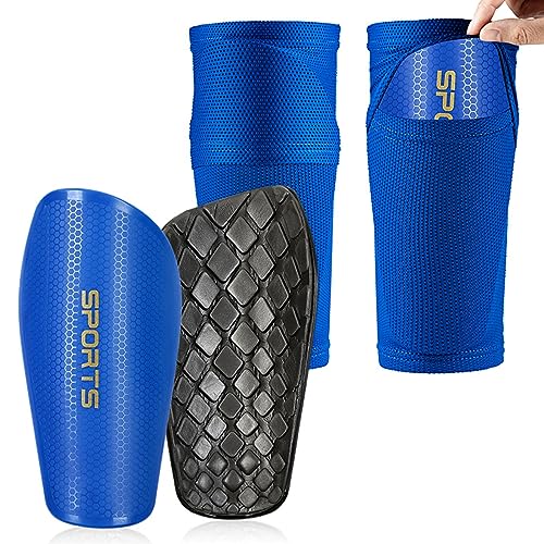 Kripyery Parastinchi da calcio per ragazzi con maniche elastiche resistenti agli urti cuscini in EVA per bambini antiscivolo traspiranti gamba protettiva attrezzature da calcio 1 blu L