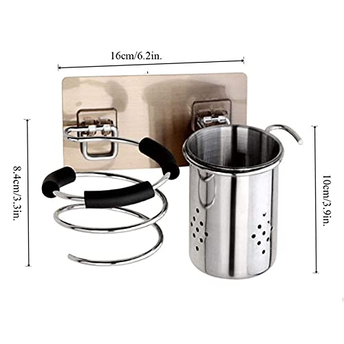 KRISFD Porta Asciugacapelli da Parete Multifunzionale Supporto Piastra Capelli Organizer Asciugacapelli Porta-Phon Senza Foratura con Cavo per Ferro da Stiro, Arricciacapelli, Piastra per Capelli
