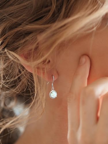 KristLand Gioielli Moonlight Orecchini In Argento Sterling 925 Con Opale Creato Pendente 9MM Delicato Fidanzata Moglie Pacco Regalo