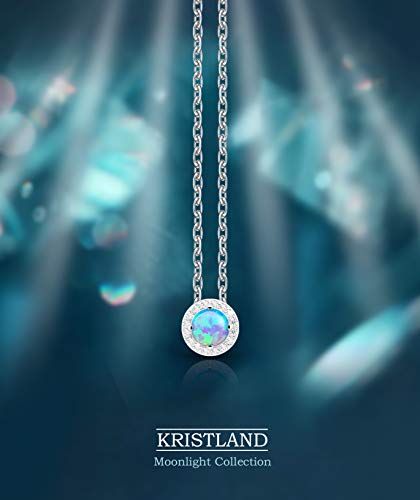 KristLand - Gioielli Ocean Eyes - Elegante Collana in 925 Argento per Donna con Ciondolo Cerchio con Opale Creato Blu con AAA Zirconi,Placcati in Oro Bianco per Fidanzata/Moglie/Ragazza/Mamma