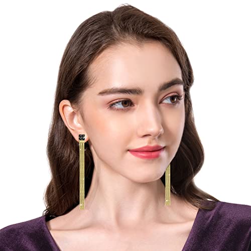 KristLand Orecchini da donna con nappe Orecchini a spillo in argento S925 placcati in platino con portagioie Ragazza/festa/matrimonio/natale Nappa dorata Zircone nero