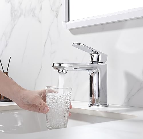 Krobec Rubinetto da bagno in ottone, design nuovo, acqua fredda e calda, rubinetto per lavabo, installazione informativa in bagno, in ottone cromato
