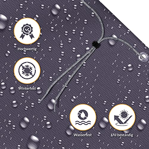 Grazie a 2 cerniere, 16 occhielli e 7,50 m di cordino di fissaggio, questa copertura antistrappo per dondolo da giardino protegge il vostro dondolo anche nei giorni molto tempestosi. Fori di ventilazione aggiuntivi sui lati consentono una circolazione ottimale dell'aria sotto la copertura e impediscono la formazione di umidità dannosa causata dalla condensa.