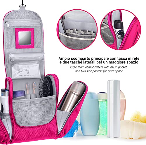 KRONIFY Grande Borsa da Toeletta Premium Appesa con Specchio | Beauty Case Uomo e Donna | Porta Trucchi Organizer da Viaggio | Spaziosa Borsa da Toilette con Gancio | Borsa da Lavaggio | Rosa