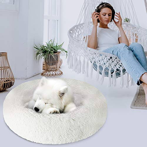 KROSER Cuccia per Cani Letto per Cucciolo Rotondo 82 cm, Lettino da Interno per Animale Domestico Lavabile in Morbido Peluche, Peluche Ciambella per Cani di Medio Taglia-Bianco