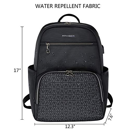 KROSER Zaino per Laptop da 15,6'' Zaino per Computer Scolastico Daypack Casual College Borsa per Laptop da Viaggio D'affari Idrorepellente per Donna/Uomo-Nero