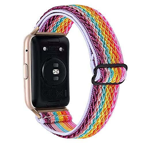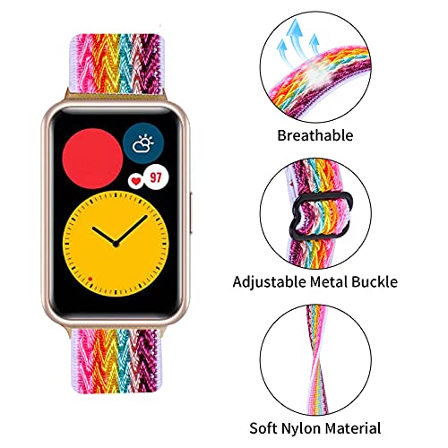 Krudary - Cinturino in nylon elastico, compatibile con Huawei Watch Fit/ Elegant/ New, regolabile, traspirante, morbido ed elastico