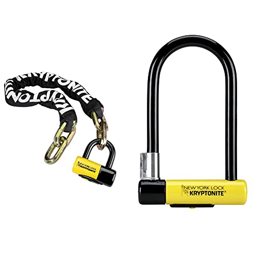 Kryptonite 999485 Lucchetto New York A Catena Per Bicicletta 1410, 100 Cm X 15 Mm & 002154 New-U - New York Lock Standard - Antifurto Per Bici (10,2 Cm X 20,3 Cm), Giallo, 1Pz.