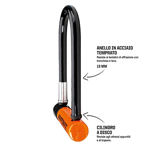 Lucchetto per bici antiscasso e antifurto con anello in acciaio temprato da 13 mm che resiste ai tentativi di effrazione con tronchese e leva