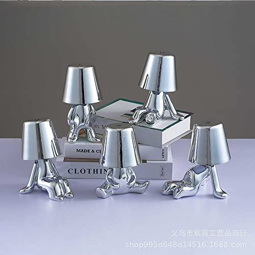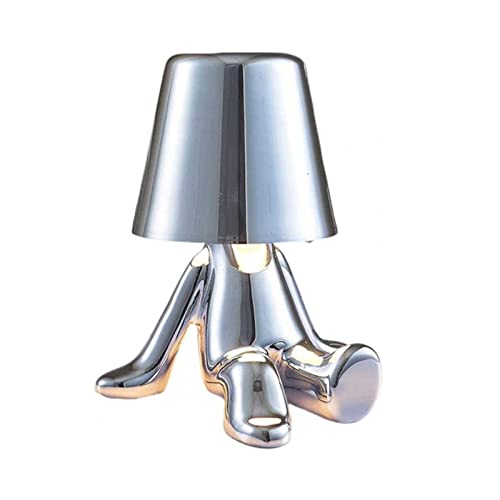 KRYSA Pensatore Omino d'Argento Lampada da Tavolo, Touch Controllo Pieno Lampada da Tavolo Porte Ricarica USB, Dimmerabile Lampada Tavolo, per Casa, Soggiorno, Camera da Letto, Ufficio