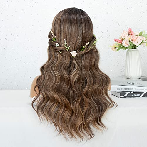 Informazioni di base: parrucche sintetiche ombre lunghe con pizzo ondulato marrone anteriore con punti salienti (Promemoria: leggermente differenza di colore tra diversi monitor)