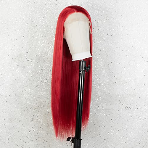 Kryssma Parrucche anteriori in pizzo rosso per donne, parrucca frontale in pizzo sintetico lungo dritto in seta, resistente al calore