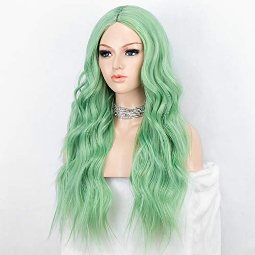 Kryssma Parrucche sintetiche ricce verde menta di modo per le donne parrucca ondulata sintetica lunga con separazione centrale resistente al calore
