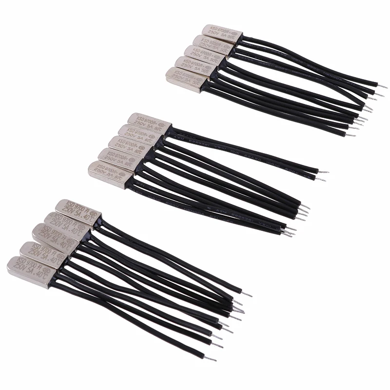 5pcs KSD9700 250V 5A 40~60 Degree Bimetal Disc Temperature Switch Normal Close Closed Thermostat Thermal Protector