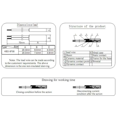 KSD9700 Sonda in plastica per protezione termica con interruttore di controllo della temperatura normalmente aperto(40℃)
