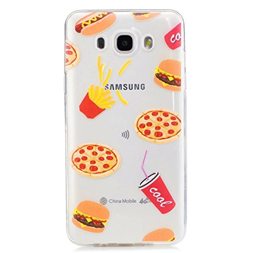 KSHOP Per Samsung Galaxy J7(2016)J710 Cover, Custodia Protettiva Assorbimento di Scossa Doppio Strato in Flessibile TPU Trasparente + Dipinto - Hamburger patatine fritte coca Pizza