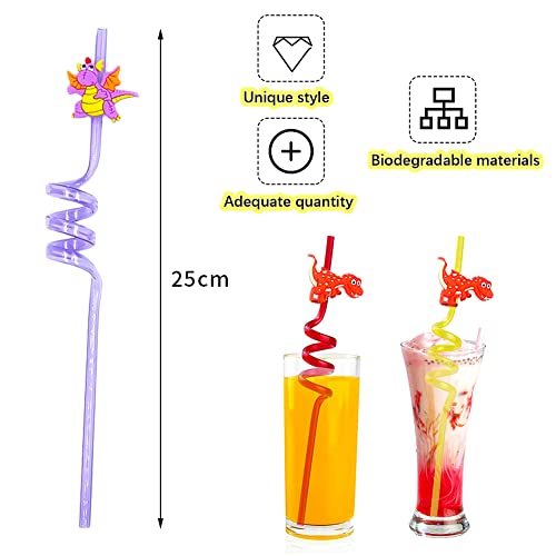 Ksopsdey 16Pezzi Cannucce Colorate Dinosaurier Cannucce Riutilizzabili in Plastica Cannucce Ricurve,per Feste di Compleanno per Bambini Decorazioni da Tavola per Feste di Famiglia