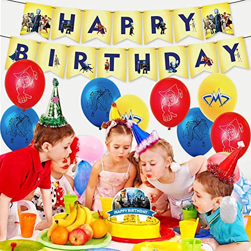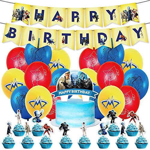 Ksopsdey Set Decorazioni per Feste Megamind 32 Pezzi Party Decorations Set Decorazioni Compleanno Includono Striscioni Buon Compleanno/Palloncini/Decorazioni per Cake Bambini