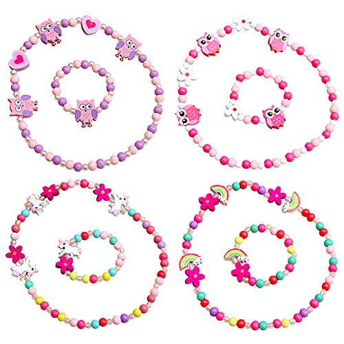 Ksopsdey 8 Pezzi Bambini Collana Bracciale Gioielli Set Colorati Collana di Ragazze, Festa Compleanno Bambina Dress Up