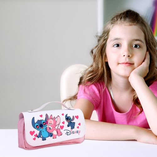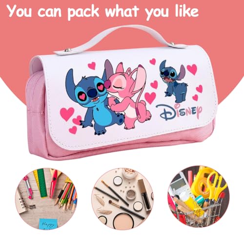 Ksopsdey Lilo Stitch Scatola di Cancelleria, Anime Angle Scatola di Cancelleria, Stitch Astuccio Portapenne Grande capacità, Astucci con Compartiment a Scomparti, per Ufficio e Scuola