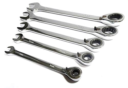 KSP-Tec - Set di chiavi a cricchetto, 8-19 mm, 5 pezzi, a gomito e commutabile, molto preciso grazie a 72 denti