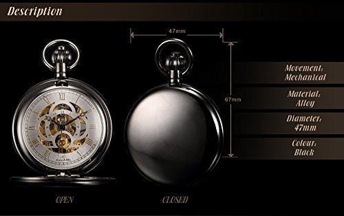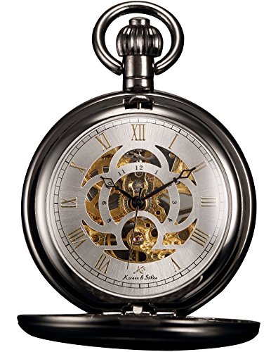KS KSP009-Orologio da taschino meccanico da uomo, scheletro di numeri romani, orologio a carica manuale
