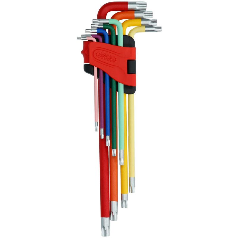 Esecuzione extra lunga Ciascuna ampiezza della chiave con codificazione colorata Completamente temprata Cromate opache In robusto astuccio di plastica Acciaio speciale per utensili