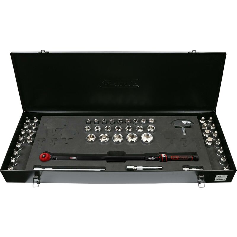 Dotazione universale Comprensiva di chiave dinamometrica con testa a cricco a quadro scorrevole In valigetta di metallo robusta e ben ordinata