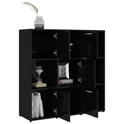 Kstyhome Armadio di stoccaggio della credenza, Libreria free standing scaffale libreria scaffale espositore, 9 scomparti scaffale scaffale libreria, 90x30x90 cm, Nero lucido