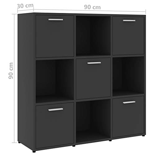 Kstyhome Armadio di stoccaggio della credenza, Libreria Free Standing scaffale libreria scaffale espositore, 9 Scomparti scaffale scaffale libreria, 90x30x90 cm, Grigio