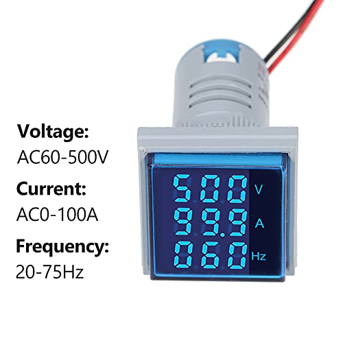 Kstyhome Mini quadrato digitale Volt-amperometro Voltammetro Amperometro Voltmetro Cimometro Tre display LED Indicatore misuratore di tensione, corrente e frequenza Monitor AC Panel Meter AC60-500V AC