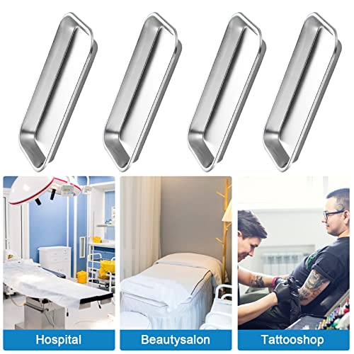 Ksvaye 4 pezzi Vassoio Acciaio Inox Rettangolare Vassoio Medico in Acciaio Inossidabile Vassoio da Laboratorio per Attrezzature, Dentale, Pinze, Strumenti da Laboratorio(22cm x 12cm)